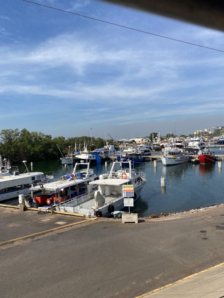 Heute ist Territory Day. Heute darf jedermann im Northern Therritory zwischen 6PM und 11PM Feuerwerk ohne dafür notwendige Lizenz abfackeln. Das ist in Australien so einzigartig. Denn normalerweise braucht es für das Abfackeln von Feuerwerk in Australien eine Lizenz. Wir haben eine Sunset Hafenrundfahrt mit Verpflegung und anschliessender Feuerwerkstour gebucht. Also machen wir uns auf den Weg in den Hafen.