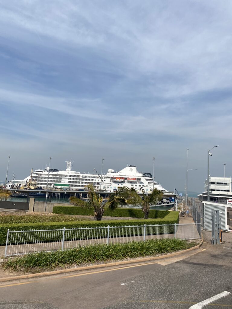 Am Morgen erkunden wir Darwin. Wir gehen als erstes in den Park, welcher gleich zwischen Hotel und Ozean liegt und gucken übers die Wasserfläche.