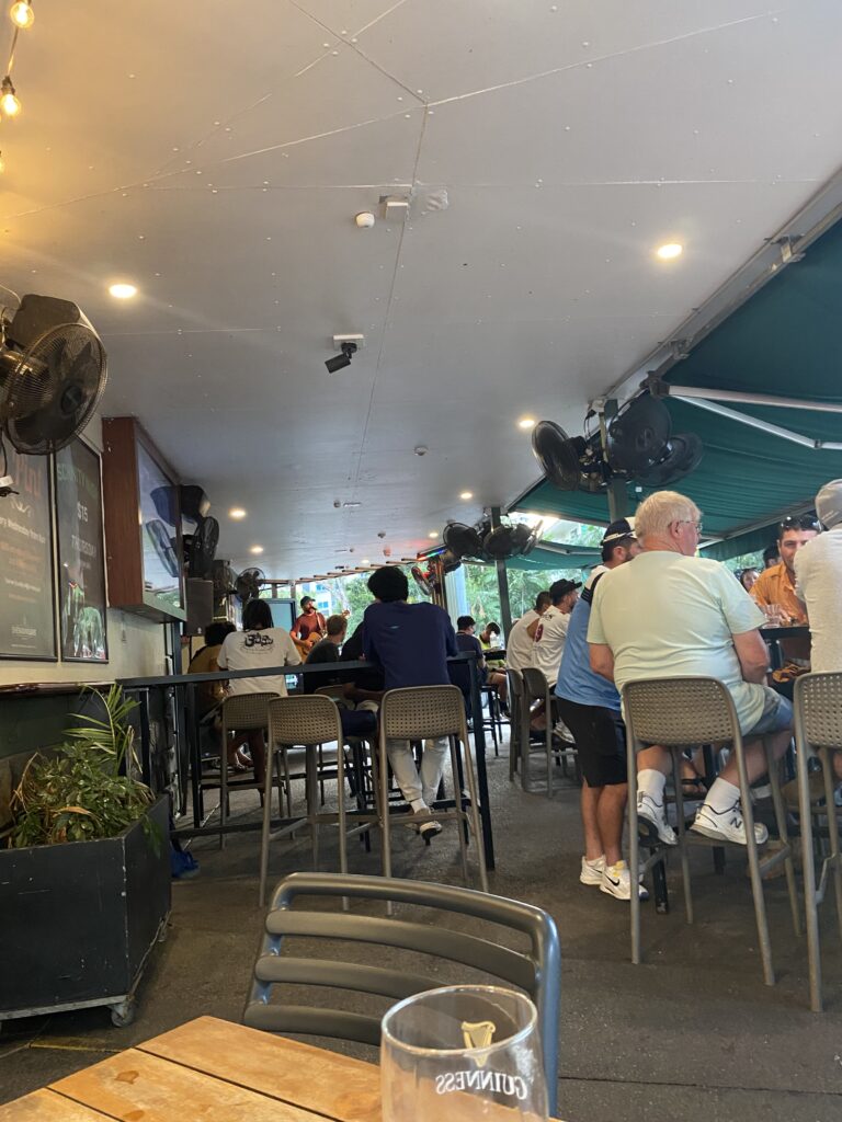 Am Mindl Beach startet jeweils um 16:00 ein Markt, welchen wir besuchen. Dieser besteht aber hauptsächlich aus Verpflegungsständen. Wir machen uns nach einer kurzen Runde wieder auf den Weg in die Stadt und gehen beim Iren die Abgabe von Sophie feiern. Es gibt live music: