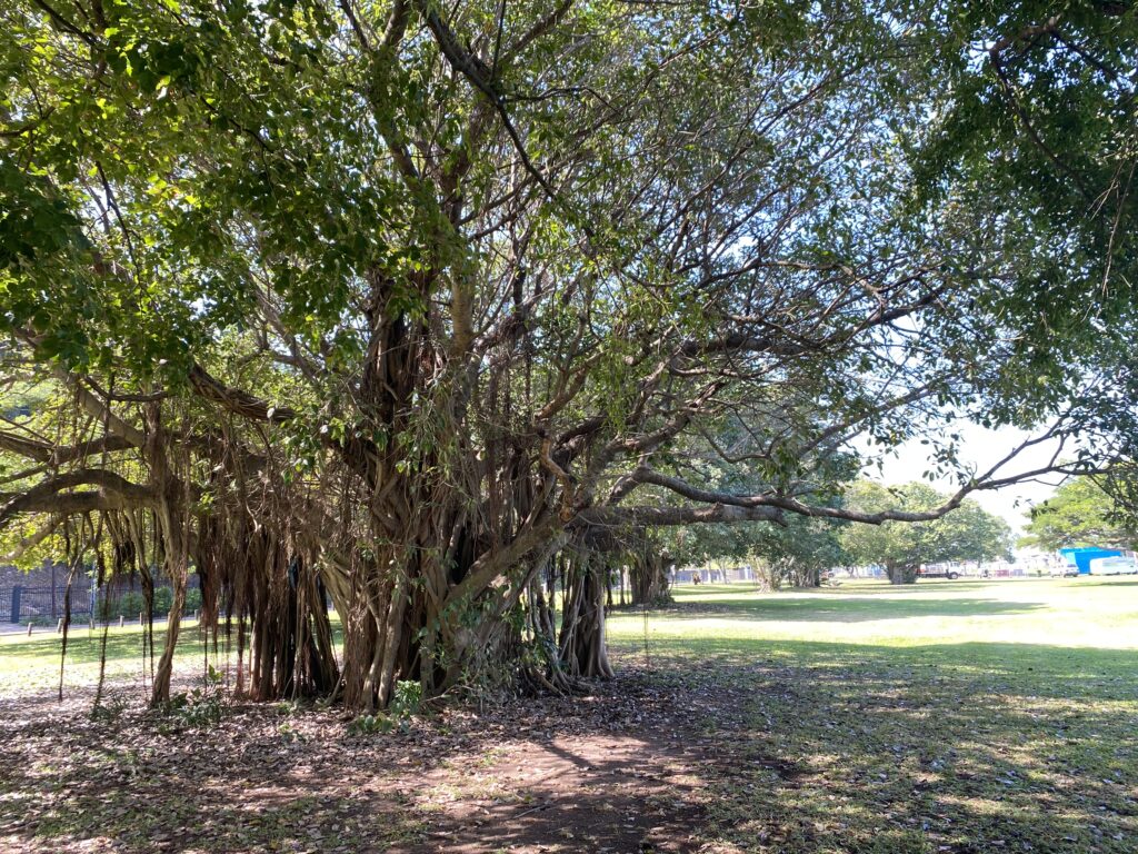 Wir wandern wieder durch den Park mit den Fig-Trees: