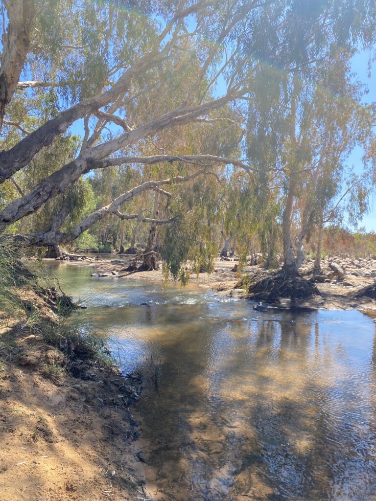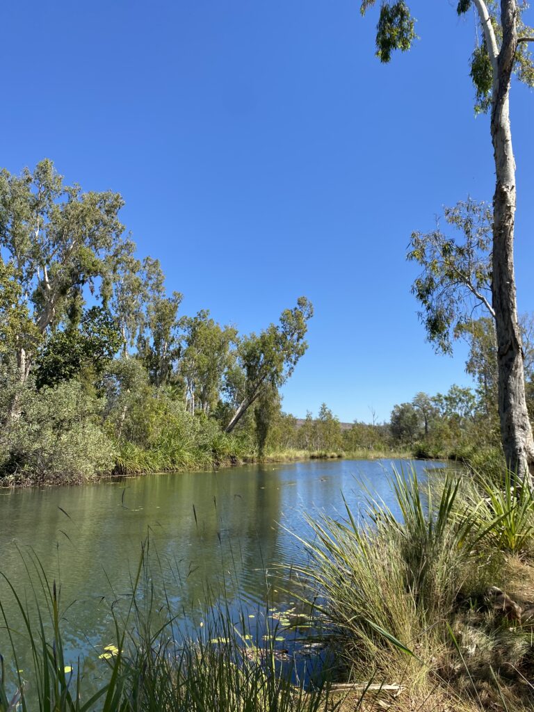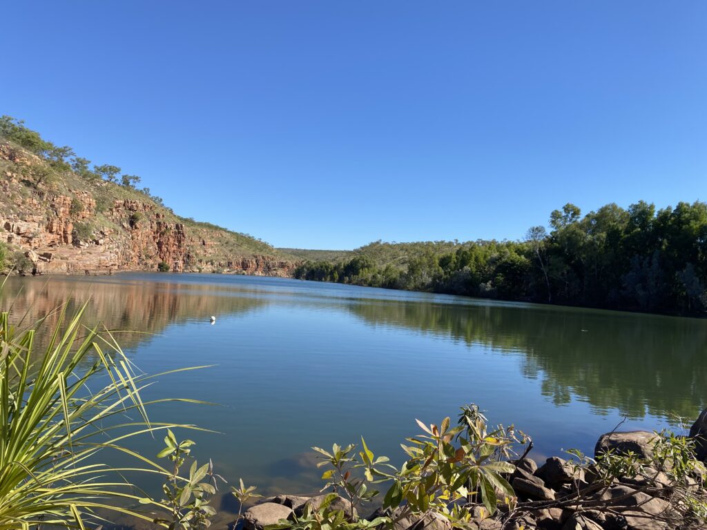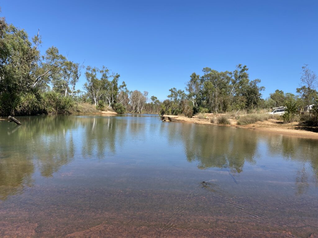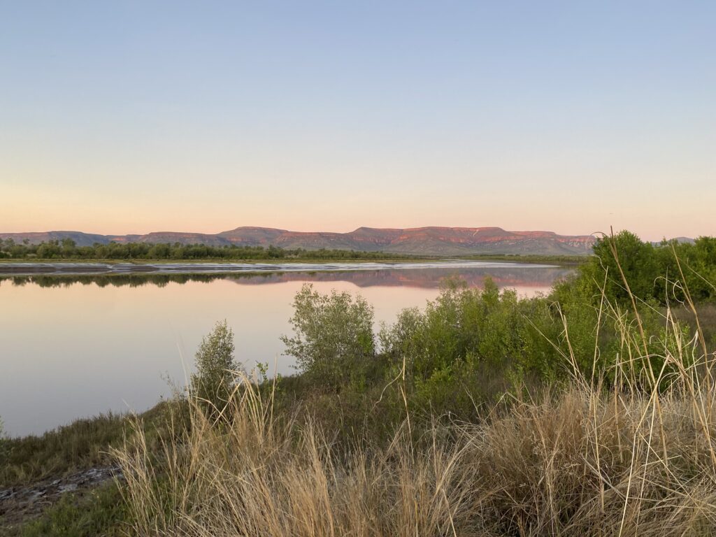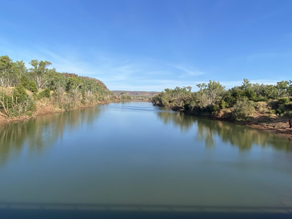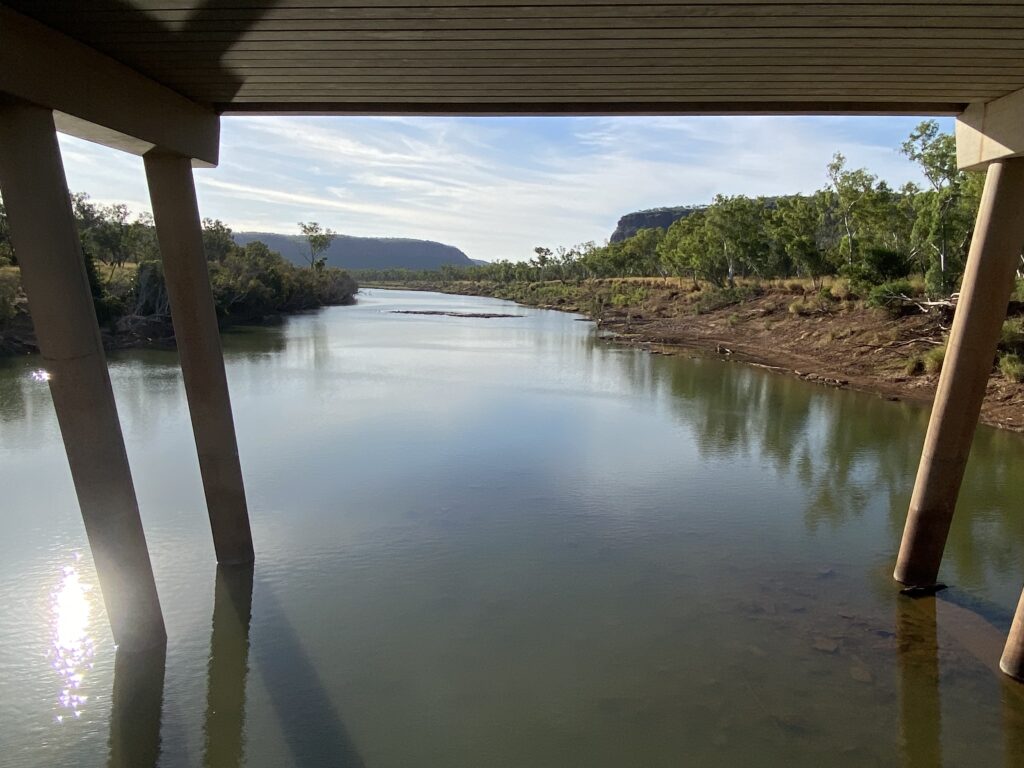Die Ausfahrt aus El Questro Station über den Fluss sieht heute Morgen sehr schön aus: