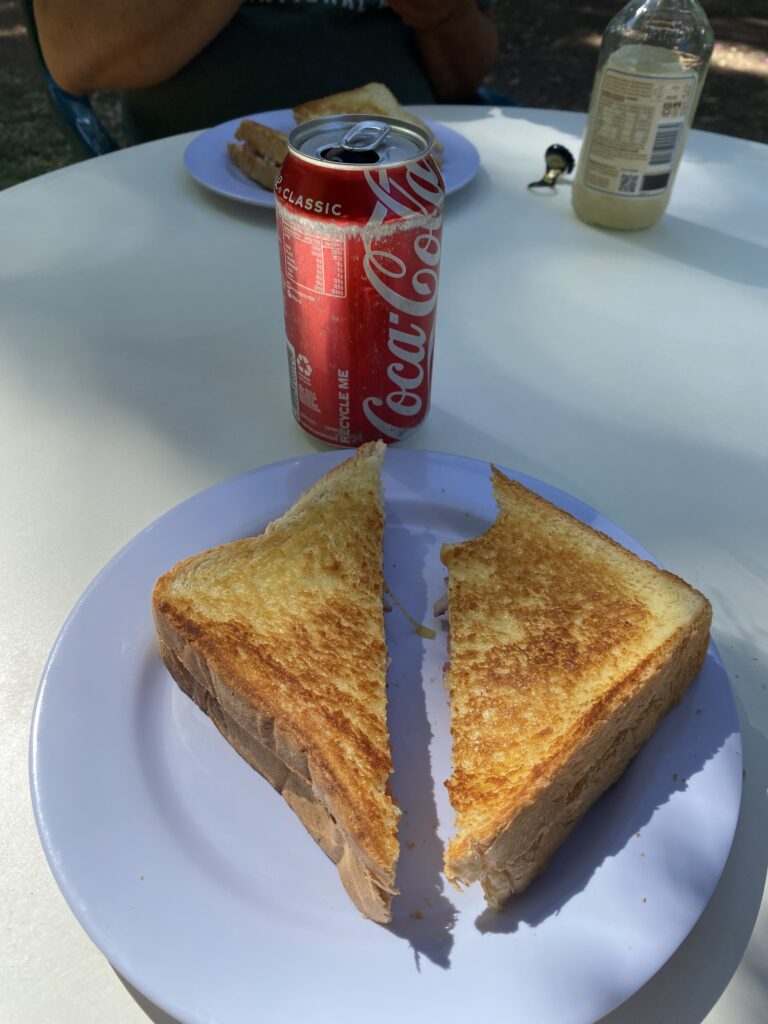 Wieder auf der Gibb River Road fahren wir zügig nach Osten. Wir kehren in der Ellenbrae Station ein. Die Frau aus Brisbane, mit welcher wir beim Frühstück im Mount Barnet Roadhouse getroffen haben, hat uns geraten, hier Scons mit Wipped Cream Essen zu gehen. Wir verzichten auf die Scons und nehmen Toast zum Mittagessen.