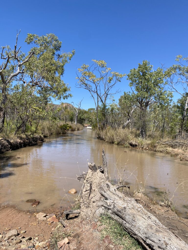 Wir fahren den Weg (braucht 4WD) Richtung El Questro Gorge und treffen auf eine lange Wasserquerung